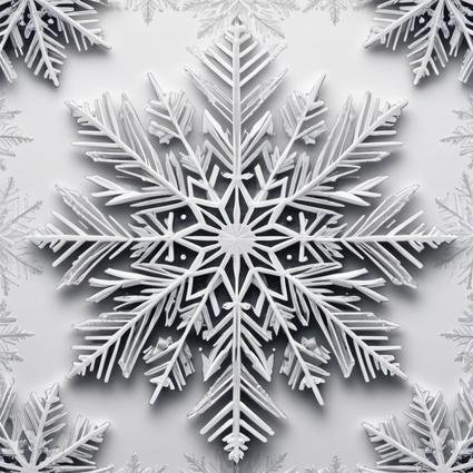 Detailed snowflakes with geometric shapes and frosty elements are showcased in high contrast against a clean white backdrop, emphasizing the delicate and symmetrical beauty of winter’s natural designs.